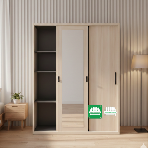 • Built-in Mirror Panel – Sleek and practical for everyday dressing