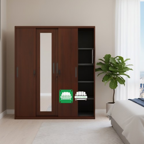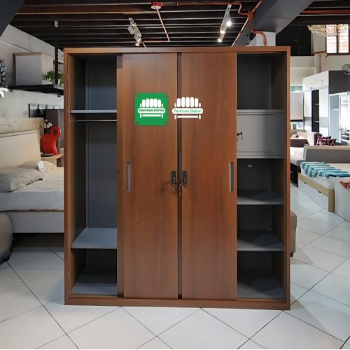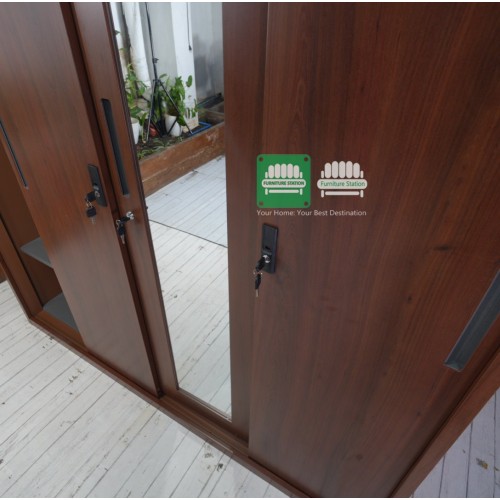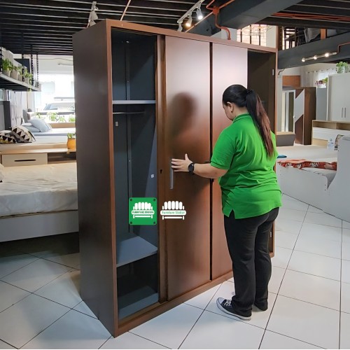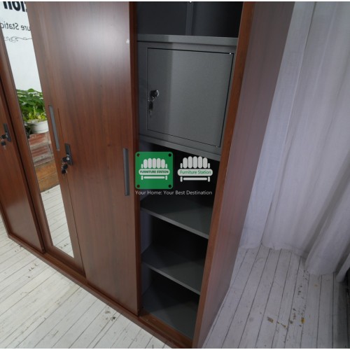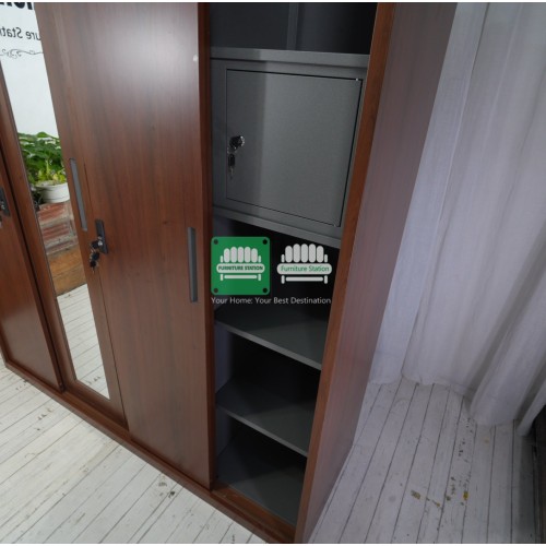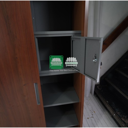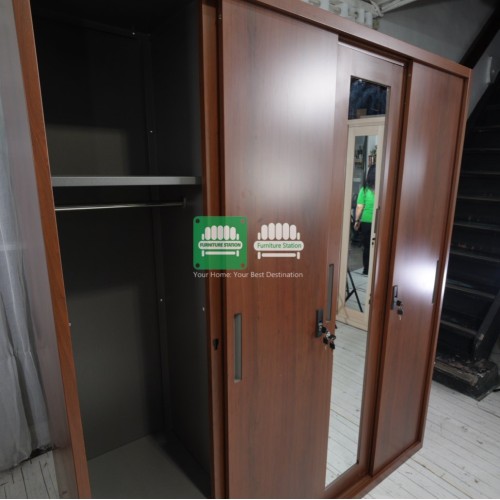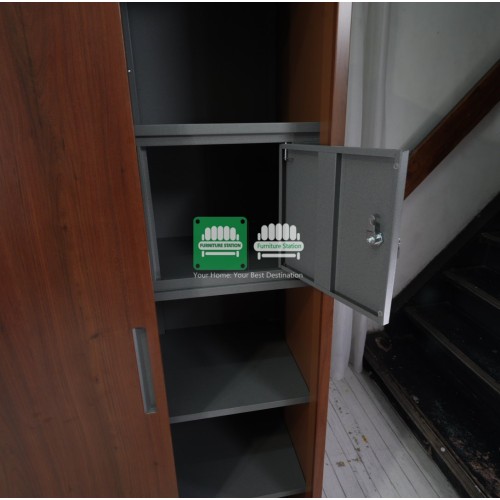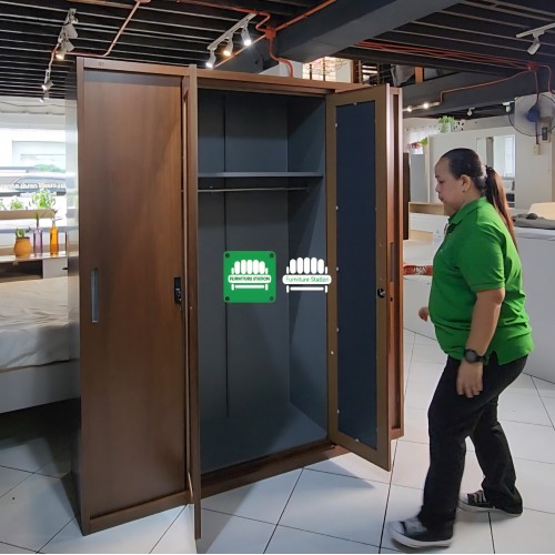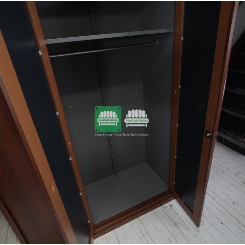 Amelia All Metal Walnut Color Wardrobe Cabinet