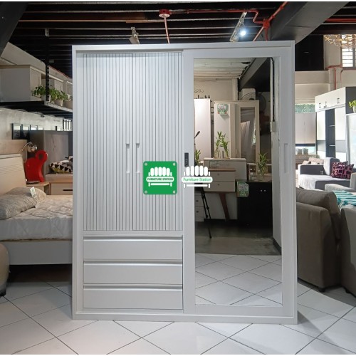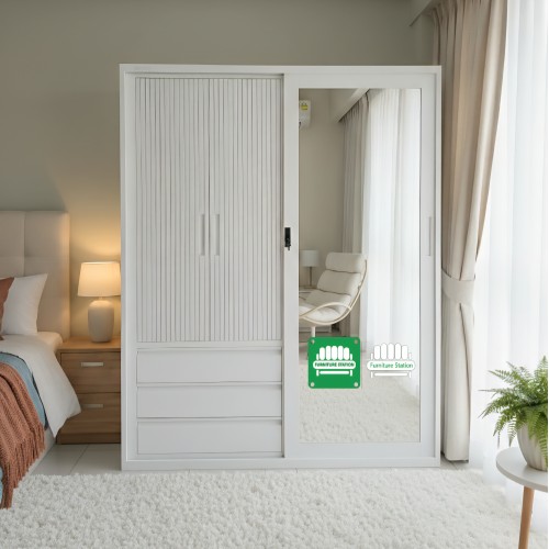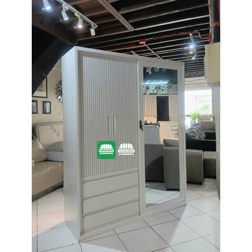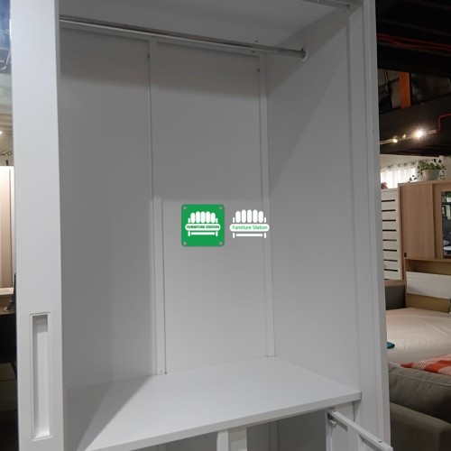Inside, you’ll find a spacious hanging area for clothes, multiple compartments for folded garments, and three drawers for essentials — all built in durable powder-coated steel for long-lasting strength.