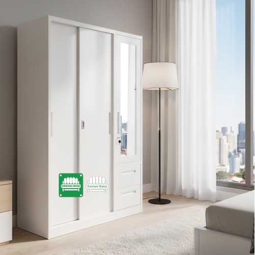 - Integrated Full-Length Mirror: One door panel features a built-in mirror, adding convenience and making your room feel brighter and more spacious.