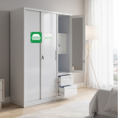 Berna All Metal Wardrobe Cabinet with Sliding and Swing doors