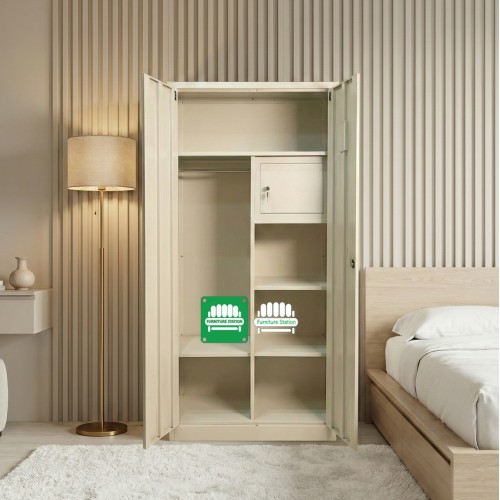This steel wardrobe is built for function. With a clean, neutral finish and a smart internal layout, it provides a complete storage solution without cluttering your room. It is designed to be durable, secure, and maintenance-free.