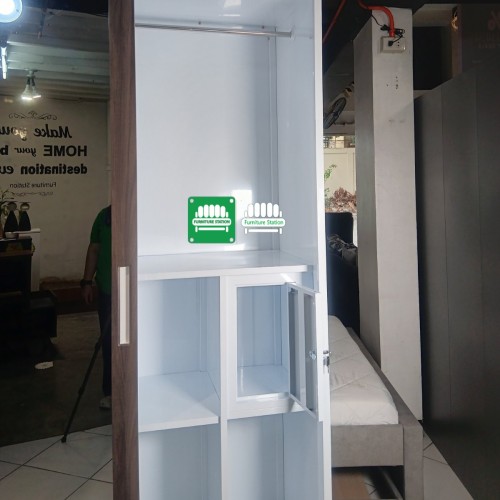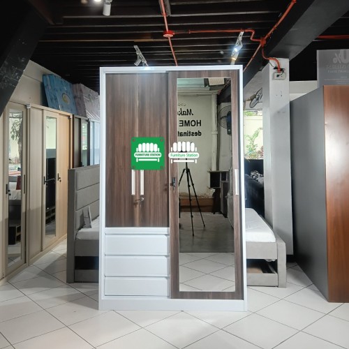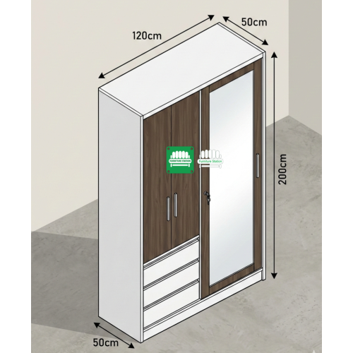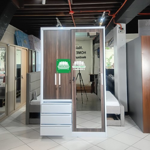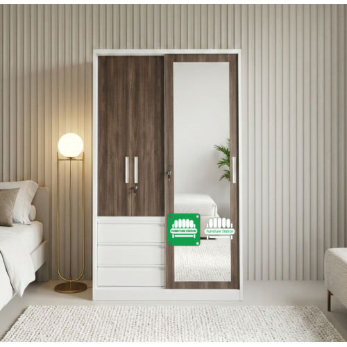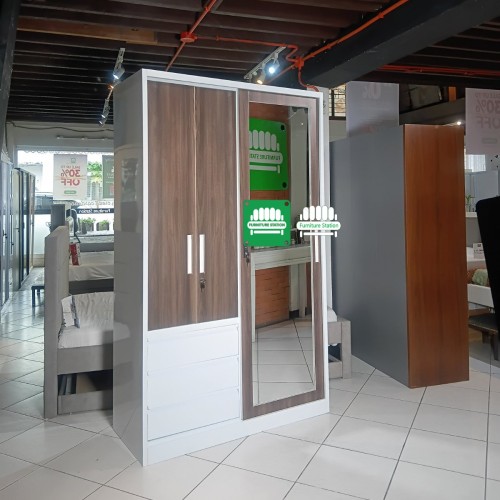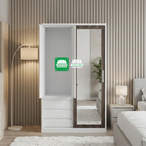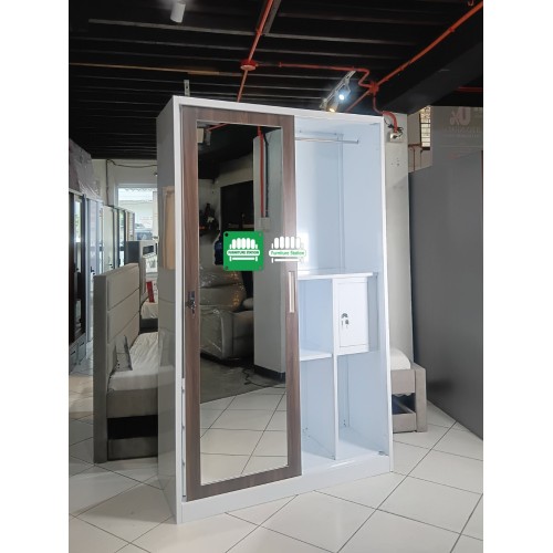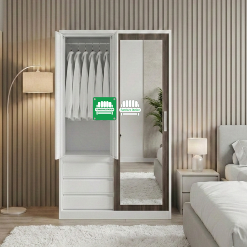 - Features: 1 Sliding Mirror Door, 2 Swing Doors, 3 Storage Drawers, and 1 Internal Metal Locker.