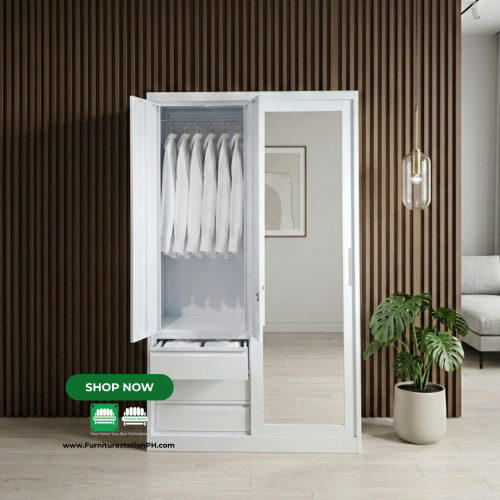 Elevate your bedroom sanctuary with the Brixen All Metal Wardrobe Cabinet—a masterclass in minimalist design and functional elegance. Designed for those who appreciate a clean, airy aesthetic, this wardrobe blends seamless storage with a modern silhouette that fits perfectly into any contemporary Filipino home.