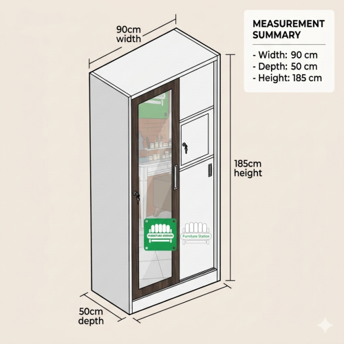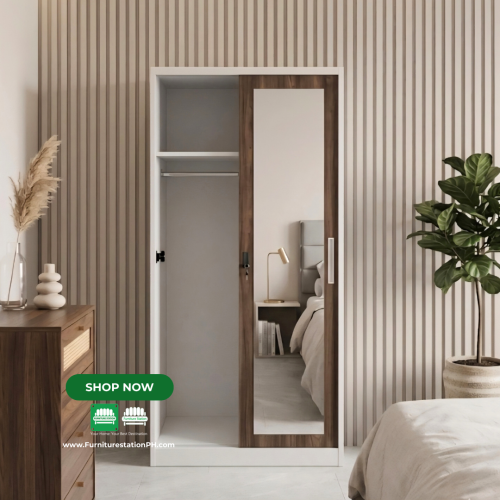 Full-Length Integrated Mirror: One door features a high-quality vertical mirror, perfect for morning prep and making your room feel brighter and more spacious.